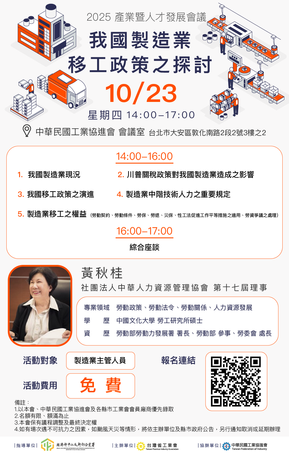 114/10/23【產業暨人才發展會議】我國製造業移工政策之探討